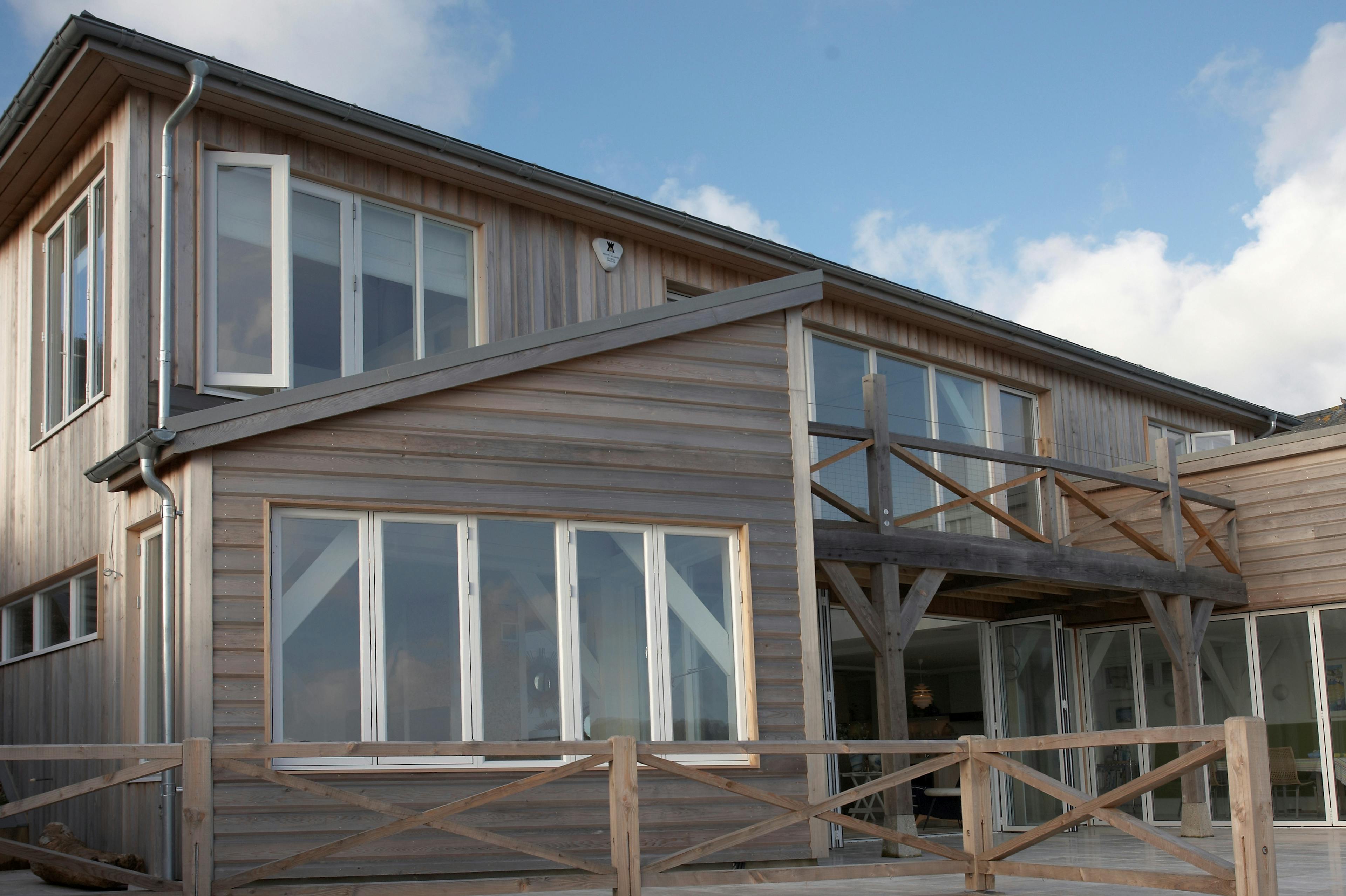 Weatherboarding is a decorative finish, not the primary weather barrier. A full build-up beneath the boards ensures insulation, airtightness, and water protection to meet Building Regulations.