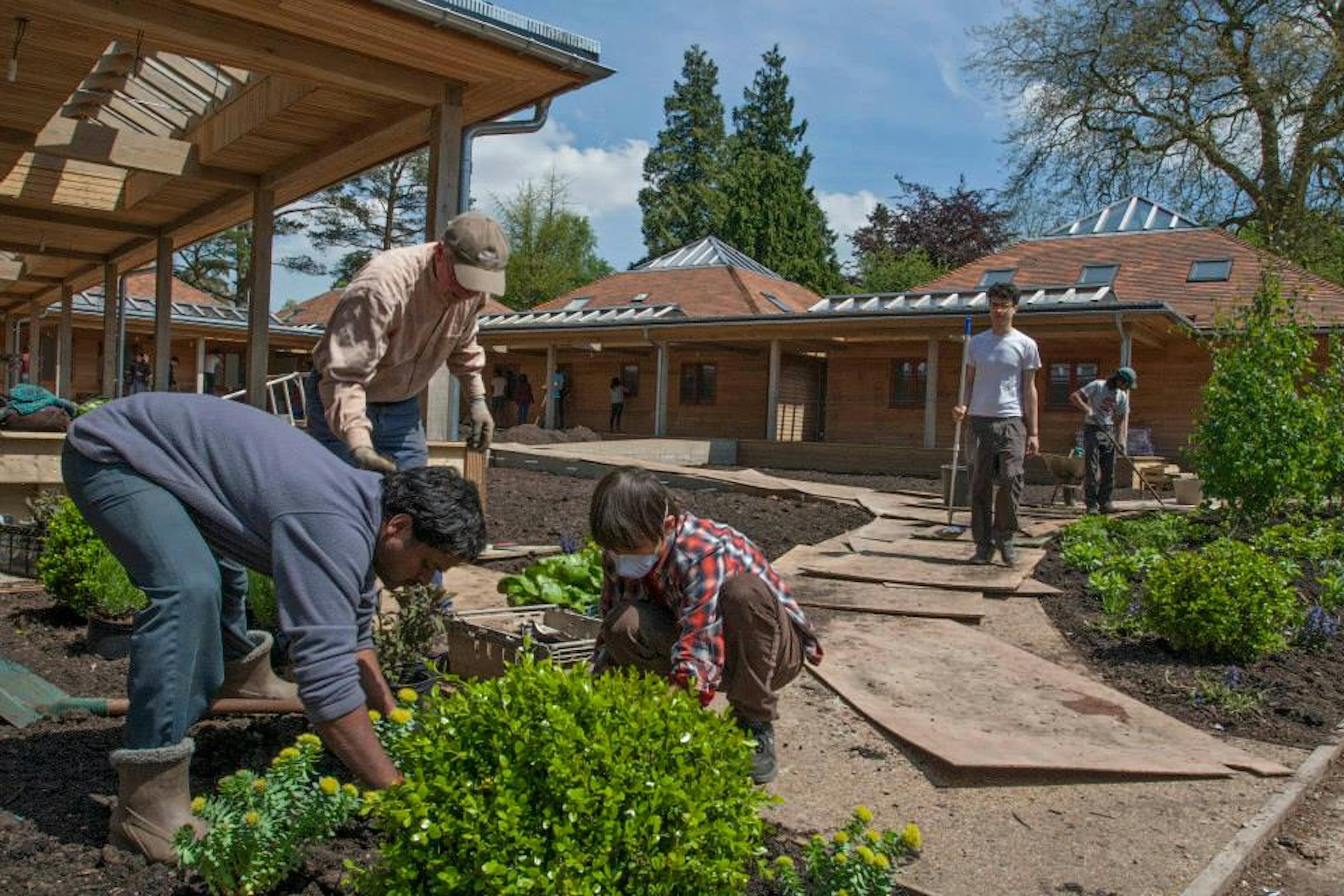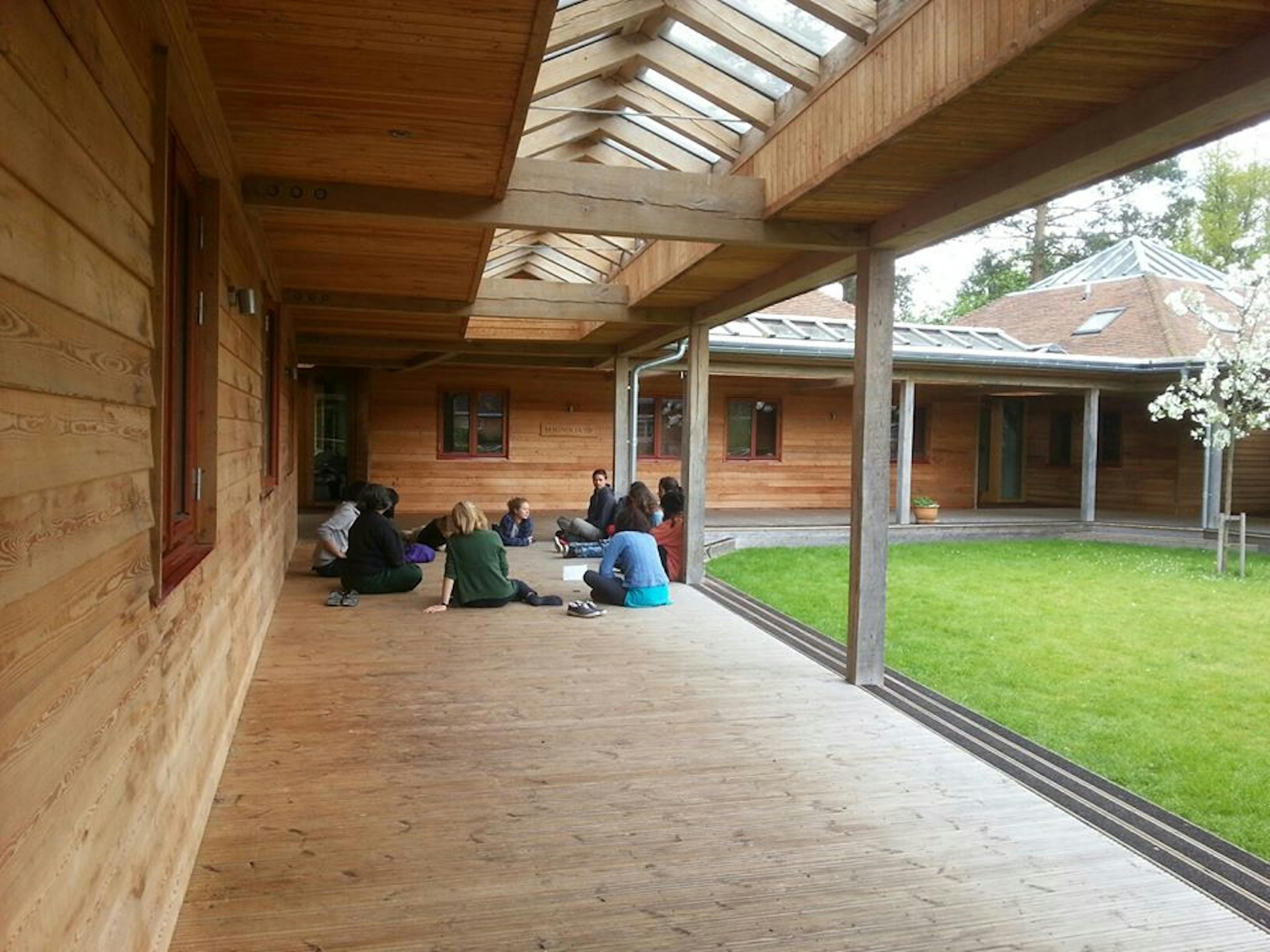 Carpenter Oak built four oak framed pavilions at Brockwood Park. The buildings are interconnected using links to form a sense of community. Children from Brockwood spent time at Carpenter Oak framing yard to learn about the process.